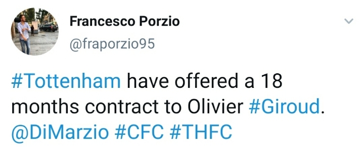 [[디마르지오]토트넘, 올리비에 지루 18개월 계약 오퍼]
