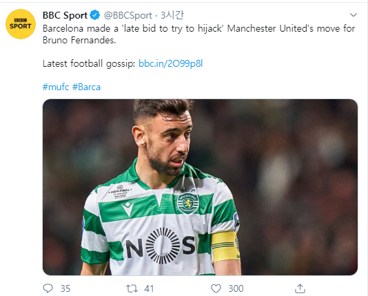 | [BBC속보]바르셀로나, 브루노 페르난데스 하이재킹 위해 비드 | |