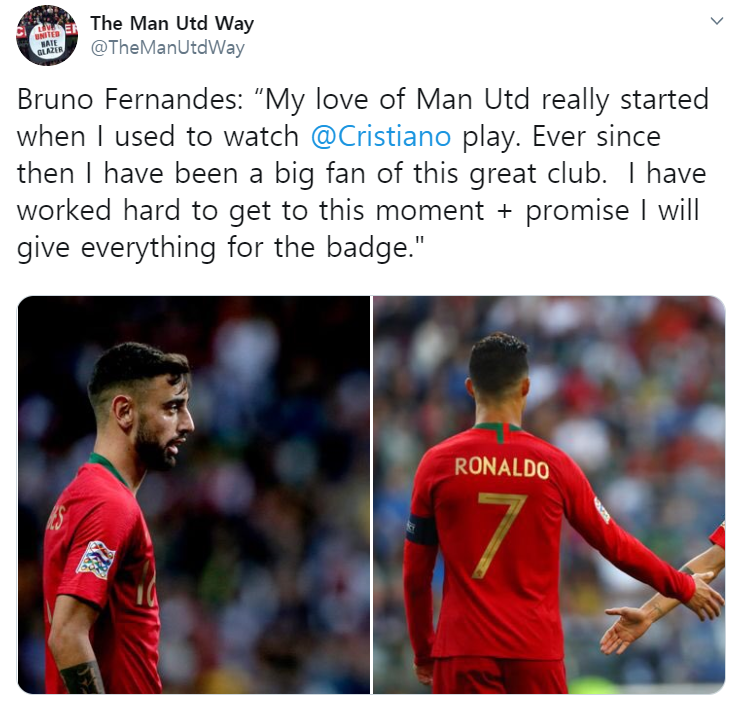 맨유에 대한 사랑은 제가 '호날두'의 경기를 봤을 때부터 시작됐습니다. 그 이후 저는 이 위대한 클럽의 팬이 되었습니다. 저는 맨유에 입단하기까지 많은 노력을 했고 이 뱃지를 위해 모든 걸 바칠겁니다.