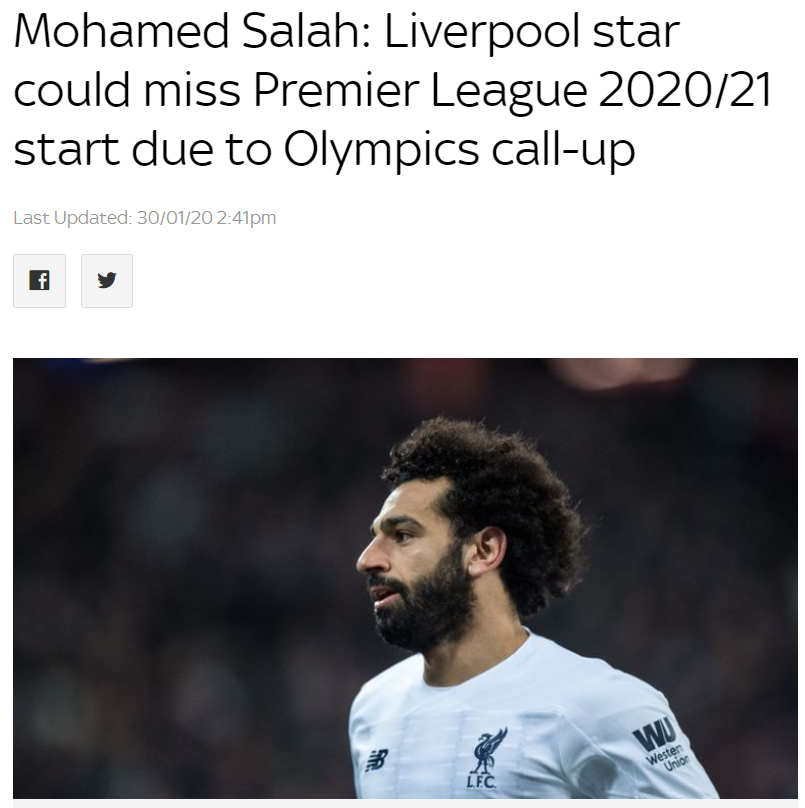 모하메드 살라는 2020 도쿄 올림픽 참가로 인해 다음 시즌 프리미어리그 개막전을 놓칠 수 있습니다. 이집트 U23의 코치는 살라를 팀의 와일드 카드 중 한 명으로 포함 시키겠다는 것을 분명히했습니다.