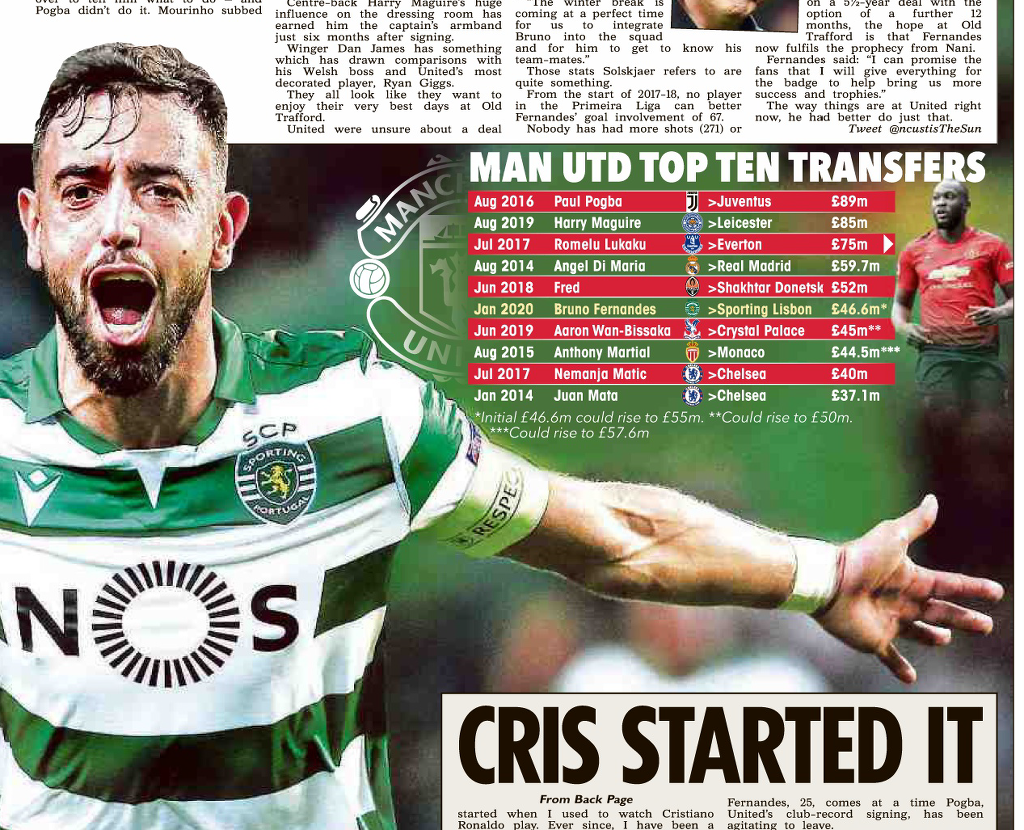 [더 선 | 맨체스터 유나이티드 역대 이적료 순위]