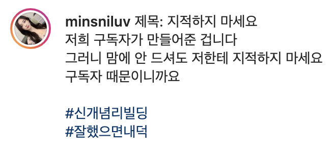 지적하지 마세요. 구독자 때문이니까요. 이 말투가 너무 귀여우시다 ㅋㅋㅋㅋㅋㅋㅋㅋㅋ