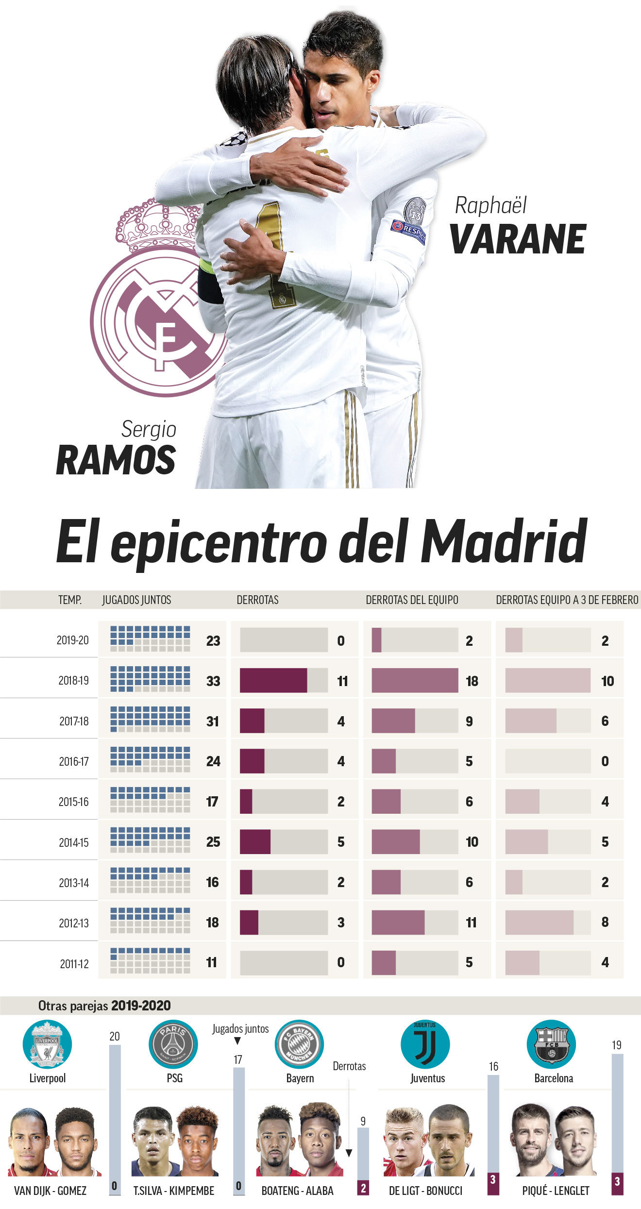 세르히오 라모스와 라파엘 바란은 이번 시즌 둘이 같이 뛰면서 아직까지 패배를 당하지 않았다.