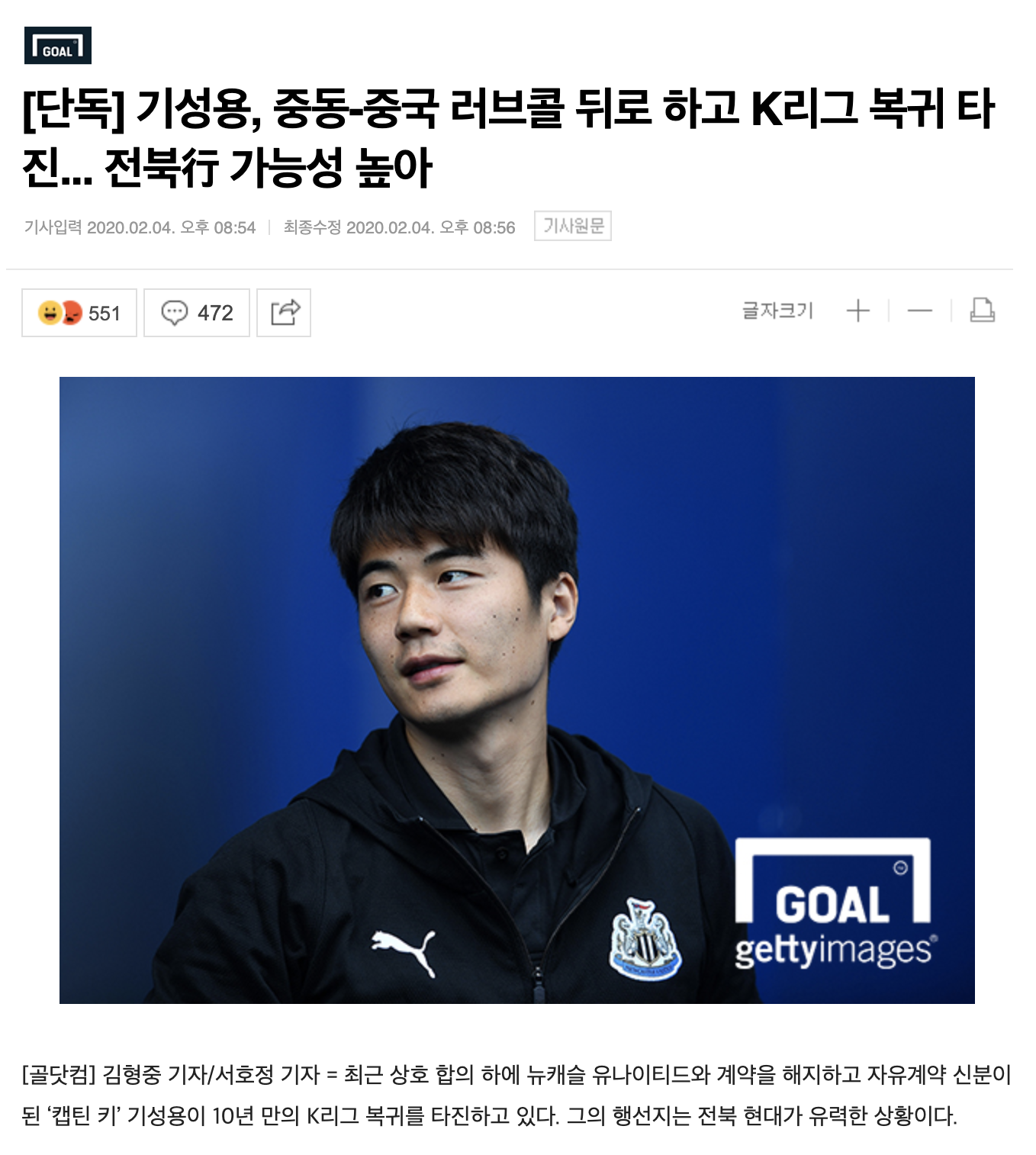 -골닷컴 취재 결과 기성용 측과 현재 구체적인 협상 테이블에 앉은 팀은 전북으로 확인됐다. 양 측은 연봉과 계약 기간 등에 대한 논의를 하고 있고, 기성용 본인도 긍정적인 반응을 보인 상황으로 알려졌다.