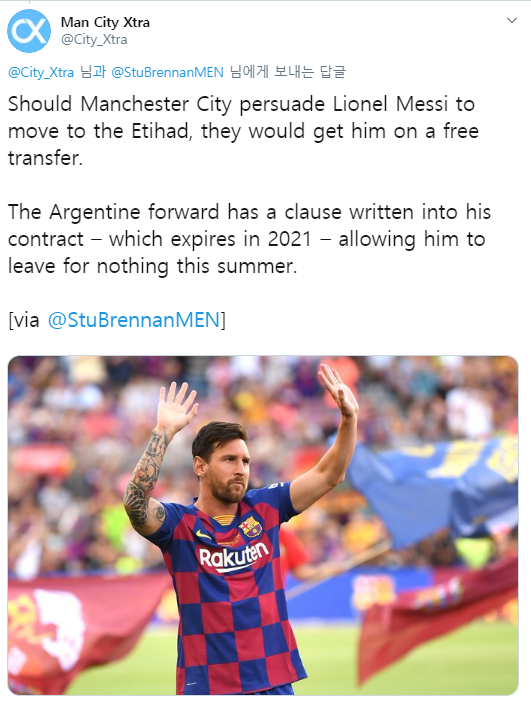 [M.E.N] - 만약 맨체스터 시티가 리오넬 메시를 에티하드로 옮기도록 설득한다면, 그들은 그를 자유 이적시키게 될 것이다.
