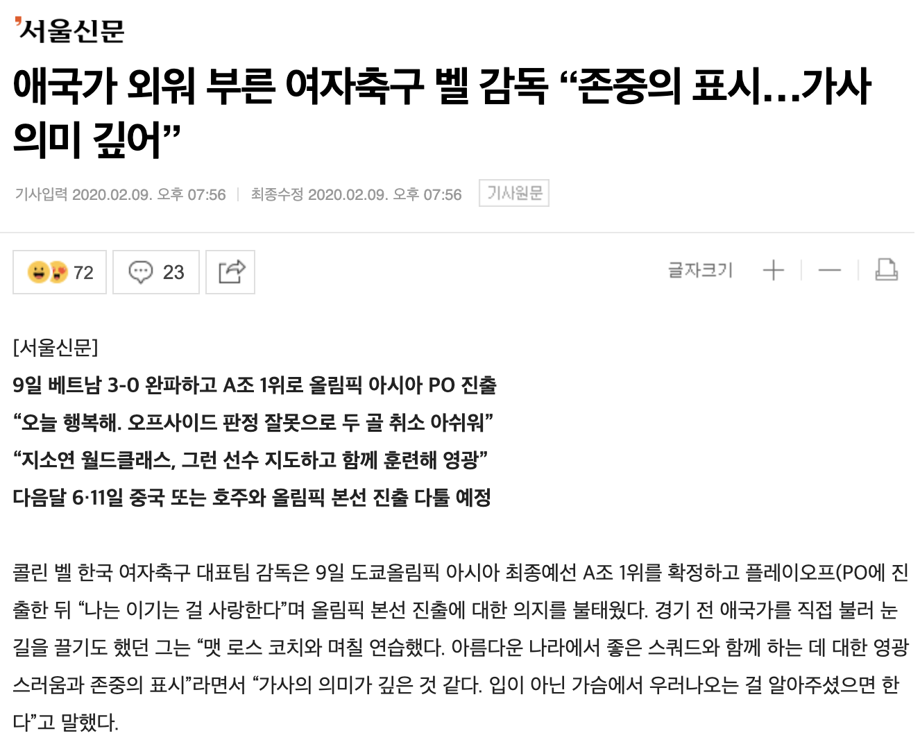 | 여자축구대표팀 '콜린 벨' 감독의 마인드 | |
