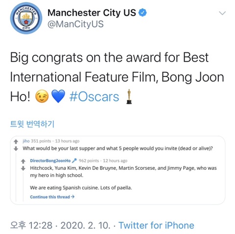 [기생충의 수상을 축하해주는 맨시티.jpg]