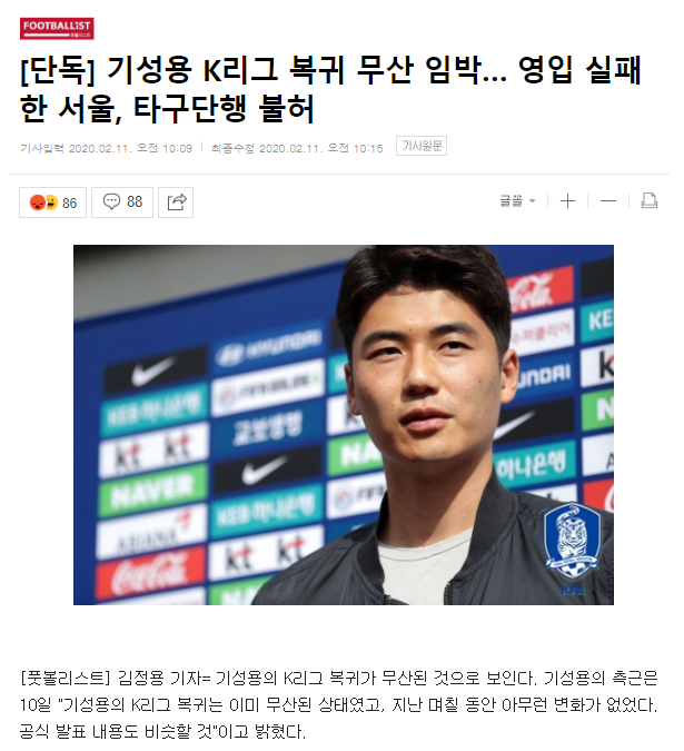 [[단독]기성용 K리그 복귀 무산 임박 영입 실패한 서울, 타구단행 불허]
