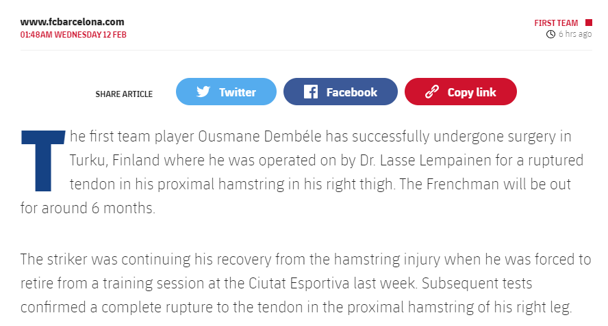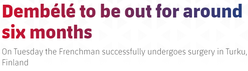[오피셜]우스만 뎀벨레 6개월 아웃