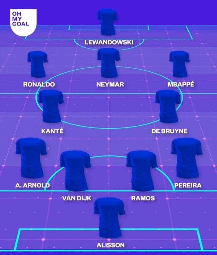 MF: 캉테, 데브라이너, 호날두, 네이마르, 음바페