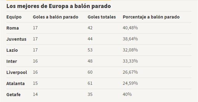 총 득점 대비 세트피스 비율이 라리가에서 가장 높으며 유럽 5대리그 전체로 봐도 가장 높은 수준을 보여줍니다.