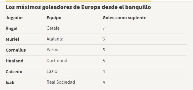 앙헬 로드리게스는 이번시즌 프리메라리가에서 9골을 기록했으며, 그 중 7골이 벤치에서 나왔습니다. 이는 유럽 5대리그 최고 수치