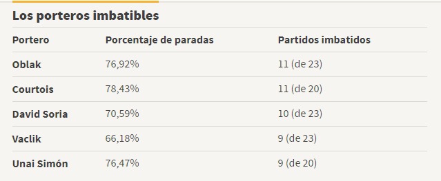 골키퍼 다비드 소리아 역시 제 몫을 해줍니다. 70.59%의 선방율을 보여주며 10회의 클린시트를 안겼습니다.