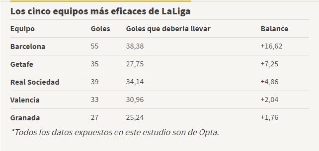 헤타페는 라리가에서 두번째로 득점 기회 대비 골 수가 높은 팀입니다.