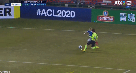 [태클 실패, 손으로 공 끌어오는 김진수]