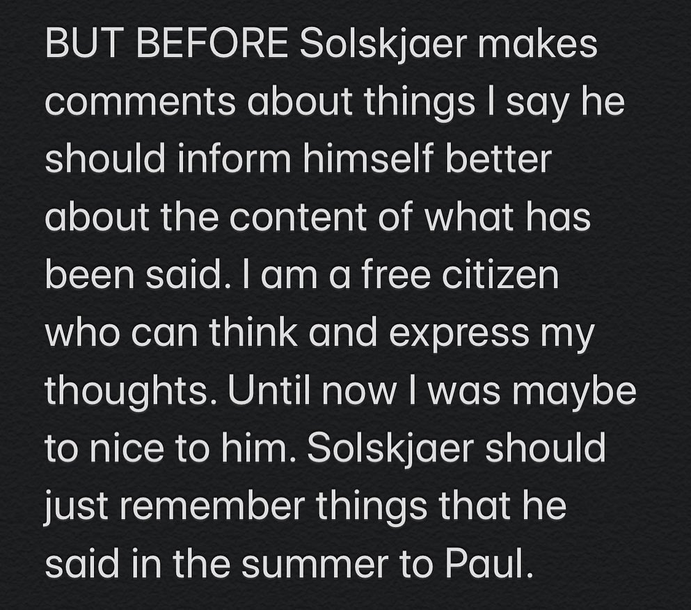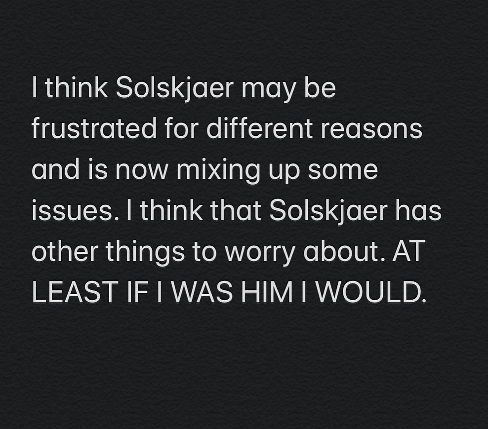 지금까지 난 솔샤르한테 친절했었고 지난 여름에 포그바한테 한 말을 기억하셈.