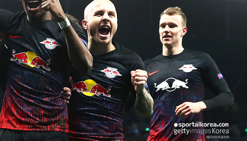 [서로 다른 유니폼을 입고 토트넘과의 경기를 뛴 라이프치히]