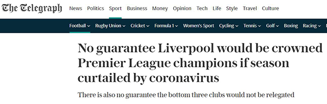 리버풀, 코로나 19로 인해 우승 무효 위기설