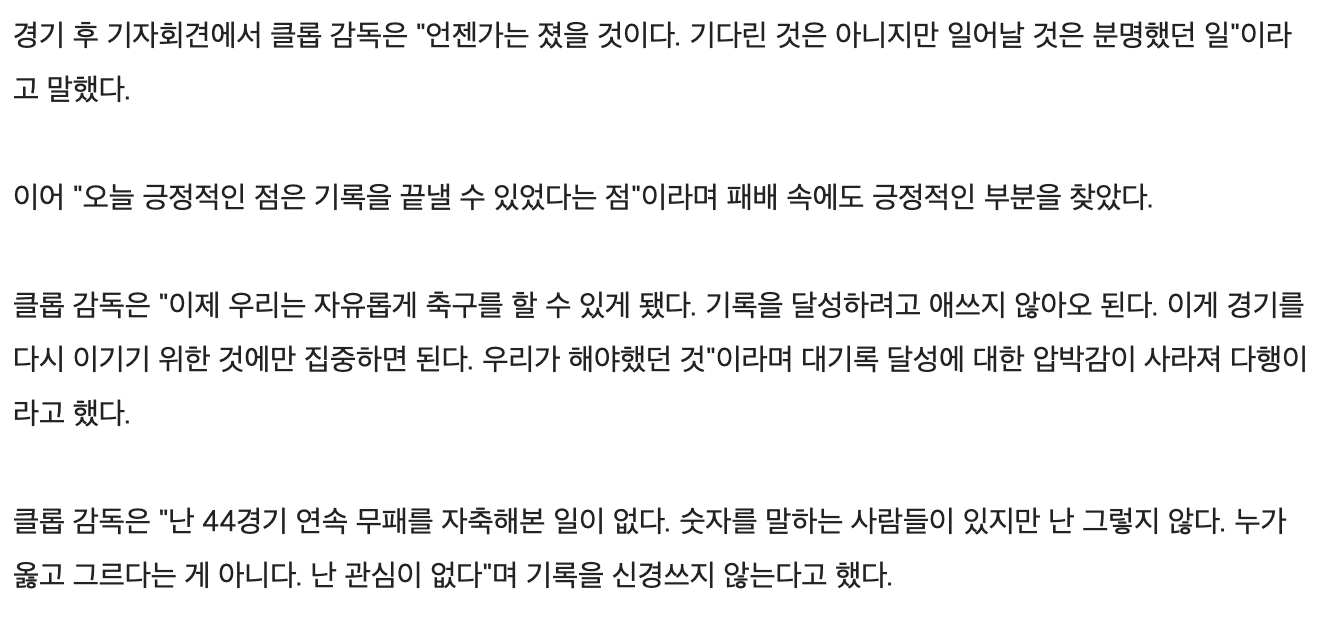 "압박감이 사라졌다" 패배 후 심경 밝힌 클롭.txt