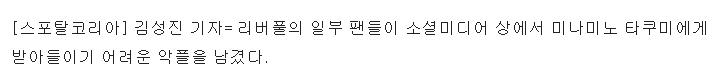 [미나미노에게 '코로나 19' 악플단 리버풀 일부 팬들]