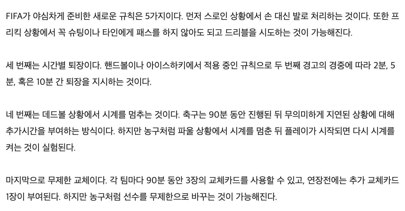 [FIFA가 실험 중인 파격적인 축구 규정들]