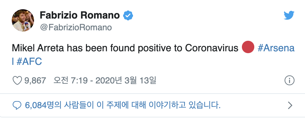 미켈 아르데타는 코로나 양성 판정을 받았습니다.