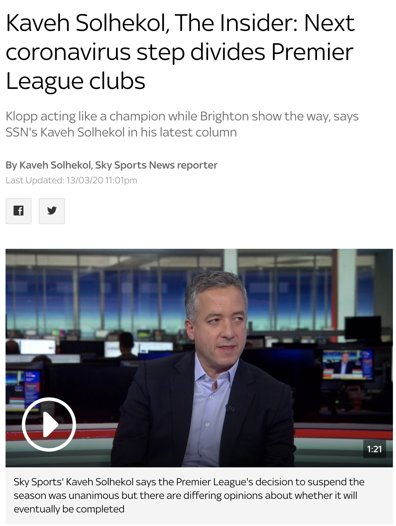 출처 : 아이라이크사커 / https://www.skysports.com/football/news/11095/11957292/coronavirus-premier-league-clubs-divided-on-what-happens-next