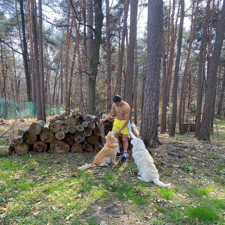 격리 중 두 마리의 개와 함께 훈련함 ㅋㅋ