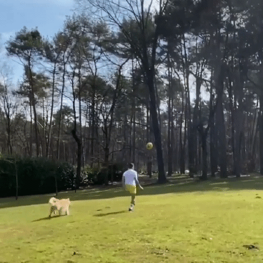 여전히 축구와 개를 무척이나 사랑하는 한 남자