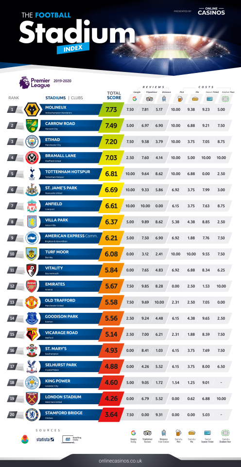 출처 : 아이라이크사커 / https://talksport.com/football/681824/chelsea-struggle-tottenham-wolves-best-every-premier-league-stadium-rated/