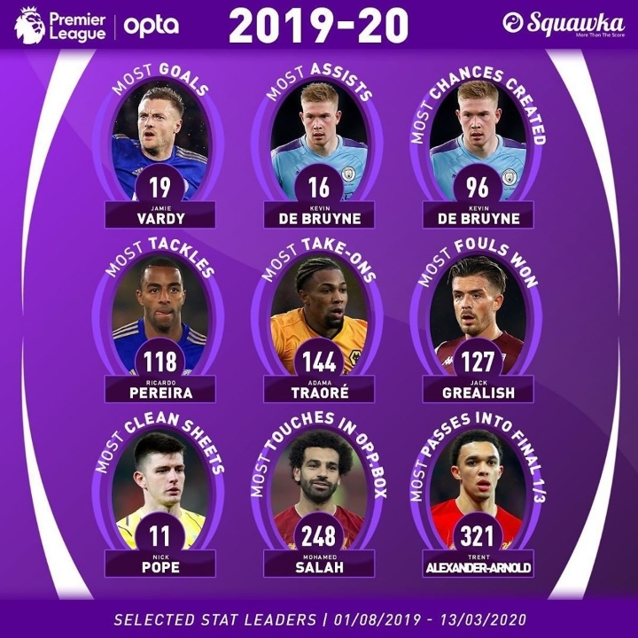 [현재까지 EPL스탯별 1위]