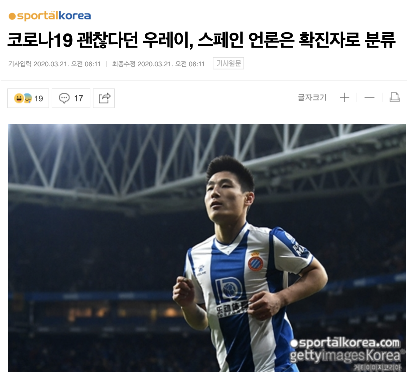 [우레이, 코로나19 확진자로 분류]