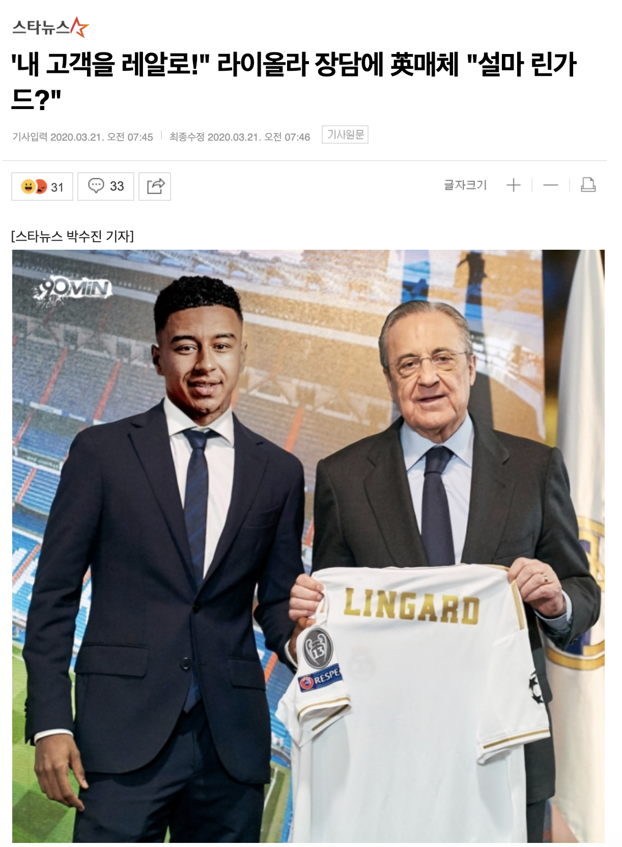 [라이올라 "내 고객을 레알로", 영국 언론 "설마 린가드?!"]
