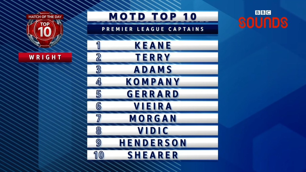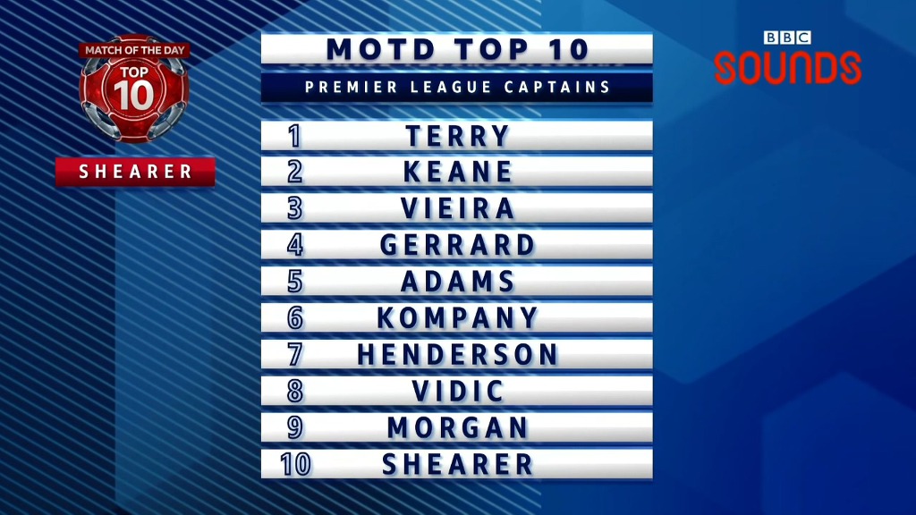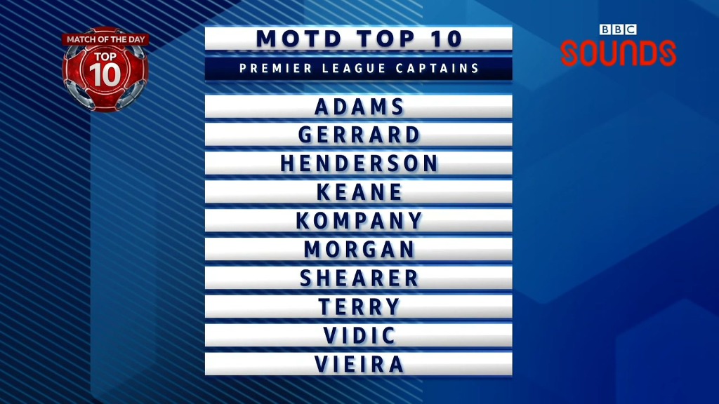 MOTD TOP 10 랭킹쇼, EPL 역대 최고의 캡틴편