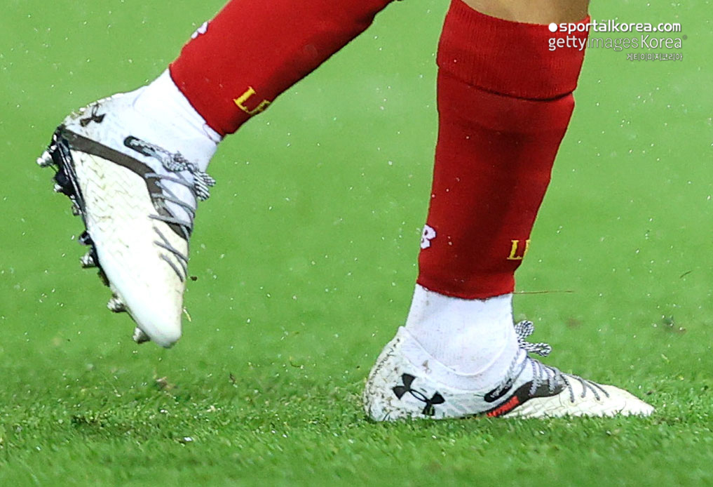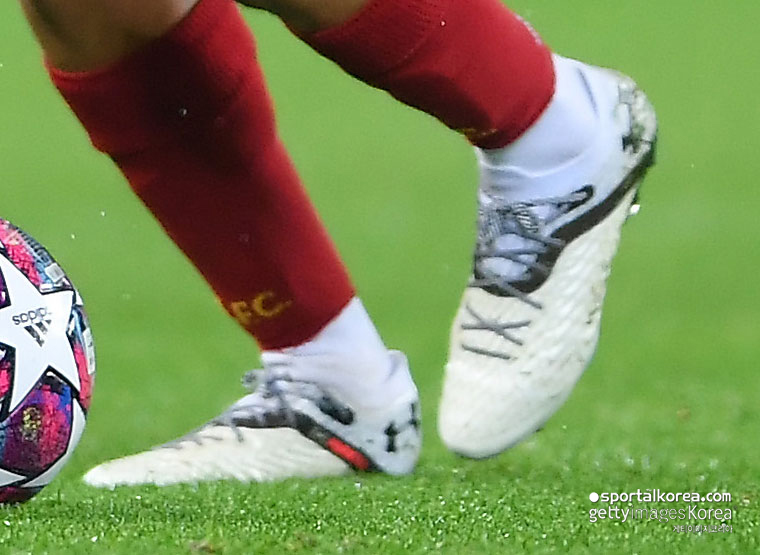 그런데 아틀레티코 마드리드와의 챔피언스리그 경기에서 아놀드는 아주 생소한 축구화를 신고 경기를 뛰었는데요. 아놀드가 착용한 축구화는 언더아머의 신상 ‘미식축구화’입니다. 이름은 ‘클론 블러(Clone Blur)’네요.