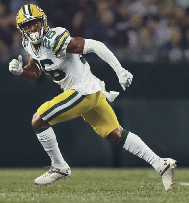 엄연히 차이가 있는 미식축구화와 축구화인데 언더아머는 아놀드에게 이 신발을 지급했습니다. 여러가지 이유가 있겠지만 추측으로는 ‘클론 블러’ 제품이 축구와 미식축구에서 모두 신을 수 있는 신발일 것으로 추측됩니다.