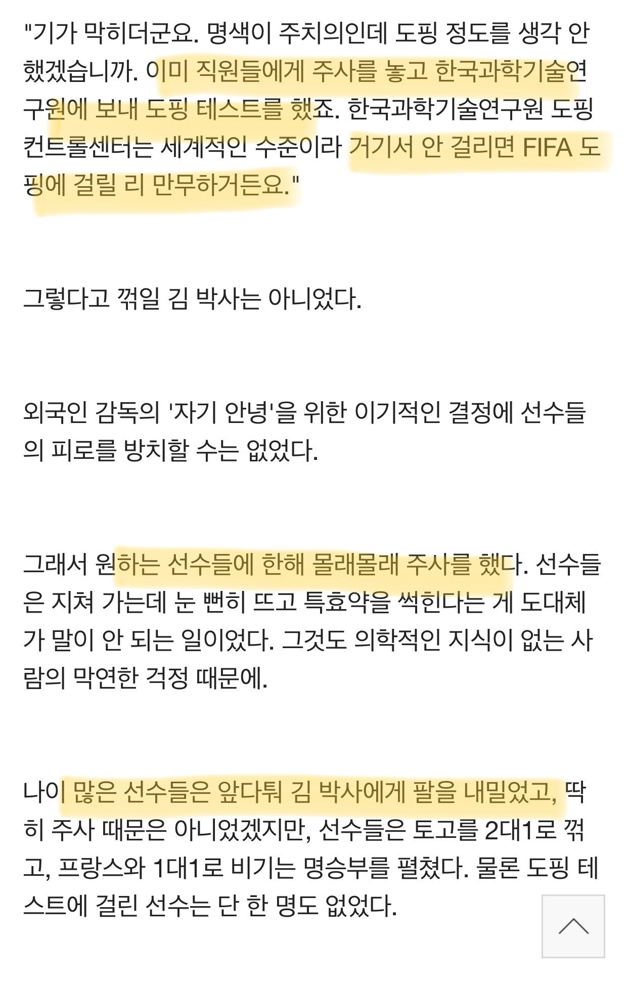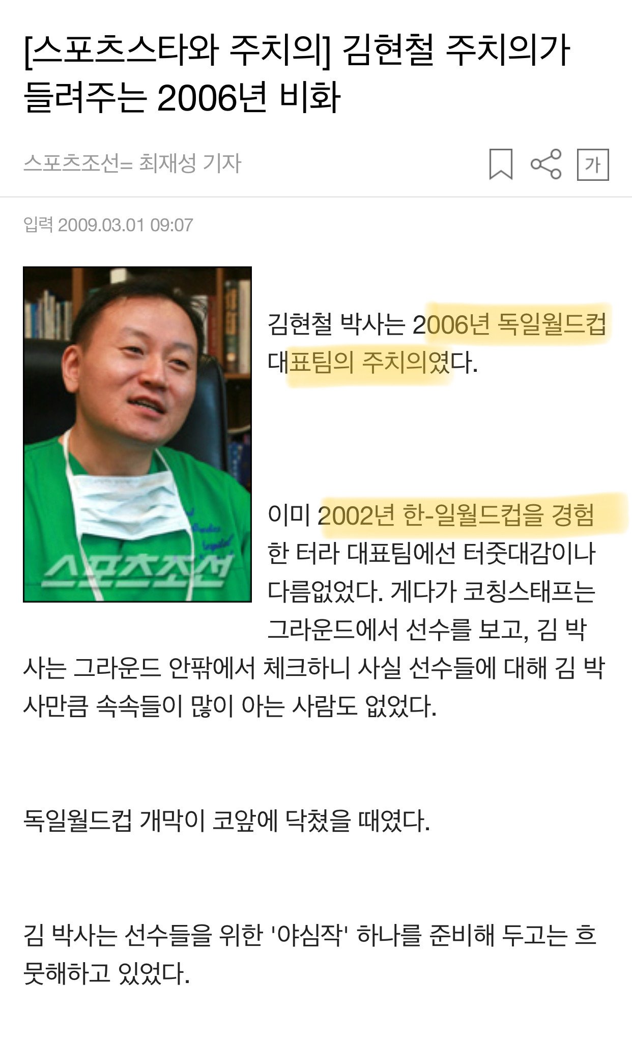 2002,06,10년 월드컵에서 대한민국 주치의를 담당했던 전 주치의의 썰이네요!!