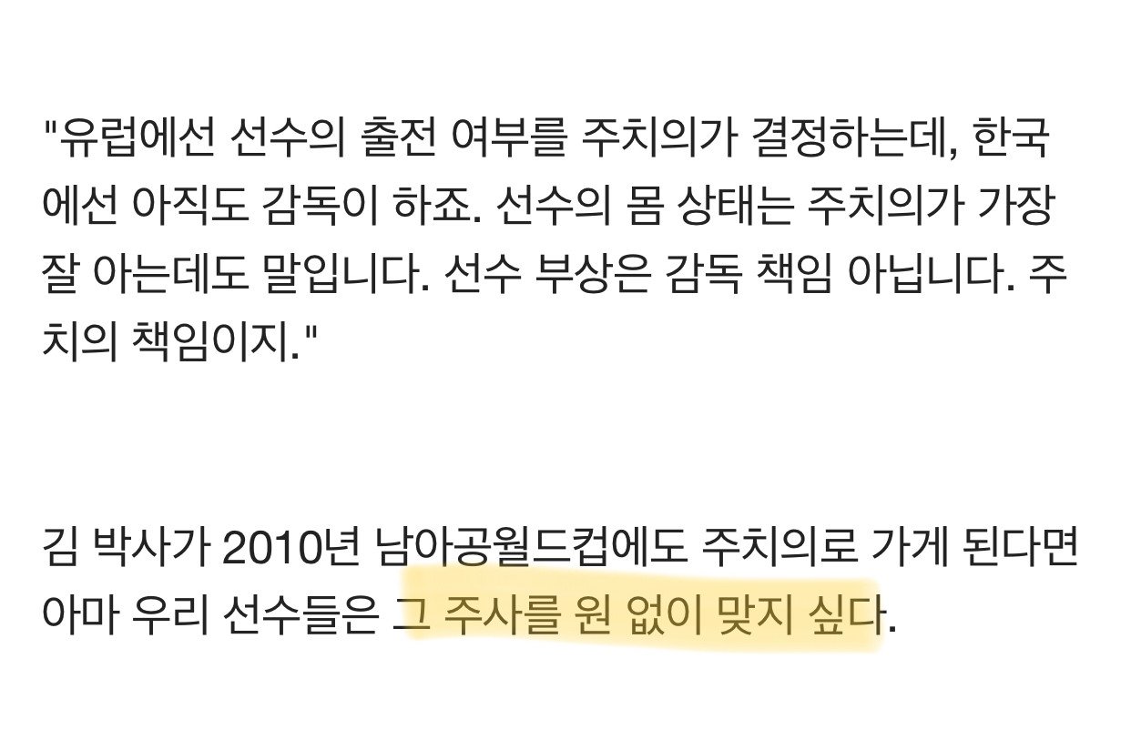 2002,06,10년 월드컵에서 대한민국 주치의를 담당했던 전 주치의의 썰이네요!! 여러분은 어떻게 생각하시나요?