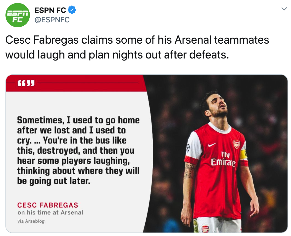 [파브레가스 : 아스날시절 동료들이 X같았다]