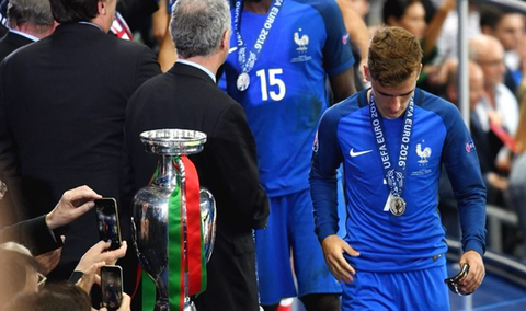 [우승컵을 지나쳐가는 준우승팀 선수들]