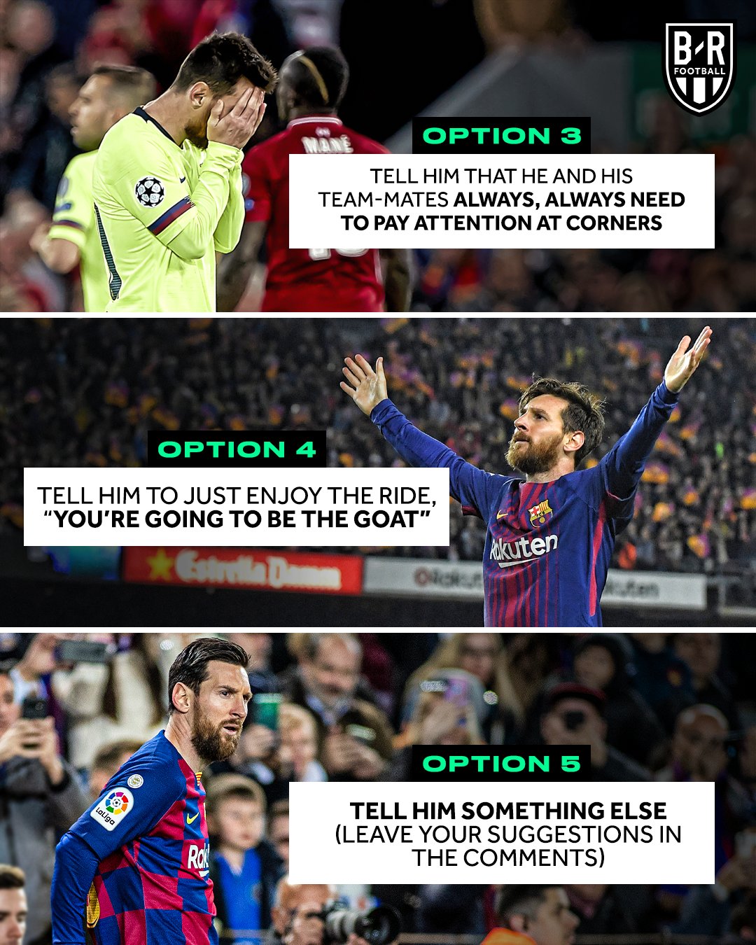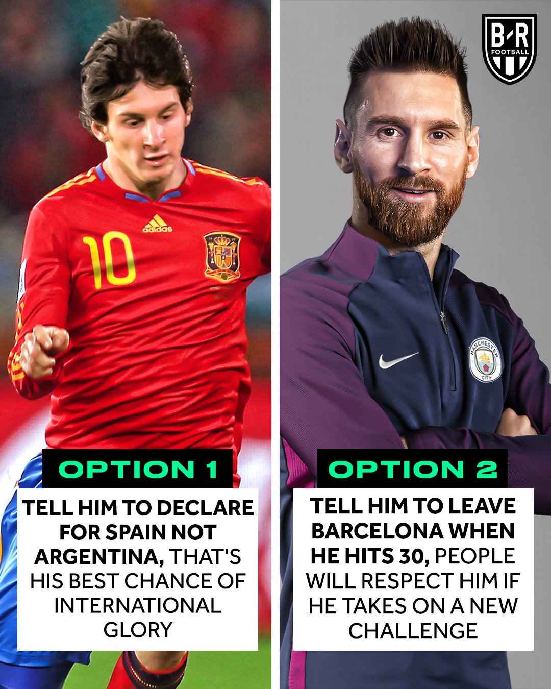 당신은 과거에 가서 16살의 리오넬 메시에게 한 가지 조언을 해줄 수 있게 되었다. 당신의 선택은?