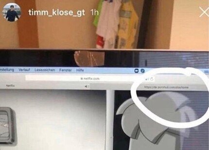 이때 방송을 시청하고 있던 한 팬에 의해 부끄러운 사실이 드러났다. 인터넷을 통해 '넷플릭스'를 시청하고 있는 클로제의 즐겨찾기에 성인 사이트가 등록되어 있었다.