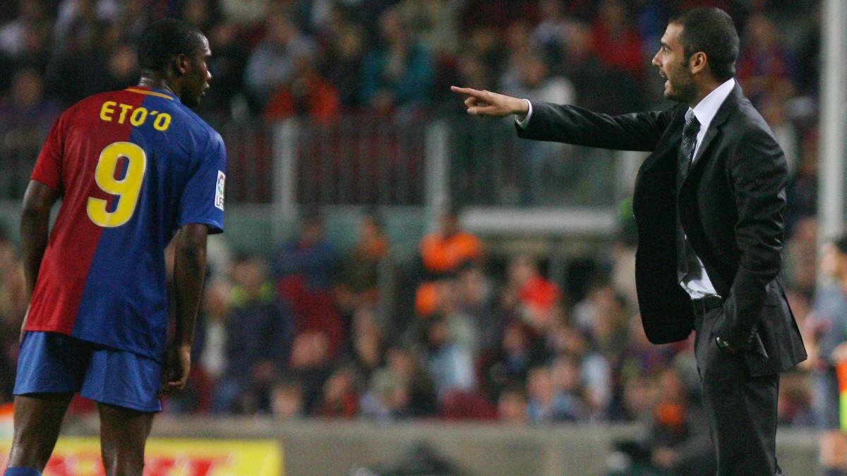 -펩 감독은 부임 이후 선수단 개편을 원했다. 에투와 호나우지뉴 중심에서 미래를 위해 메시가 중심이 되길 원했다. 따라서 에투는 떠나야 할 상황으로 변해갔다. 실제로 에투는 펩 감독과 한 시즌만 했고, 2009년 여름 즐라탄 이브라히모비치와 맞 트레이드 형식으로 인터밀란으로 이적했다.