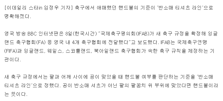 [핸드볼 규정, '반소매 티셔츠 라인'으로 정한다]