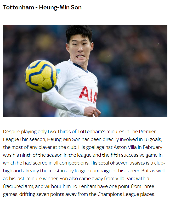 [스카이스포츠 선정 EPL 팀별 MVP에 뽑힌 손흥민]