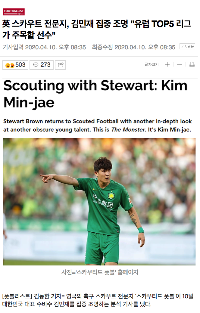 | "유럽 TOP5 리그가 주목할 선수"에 꼽힌 김민재 | |