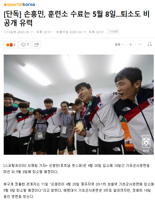 | [단독] 손흥민, 훈련소 수료는 5월 8일 | |