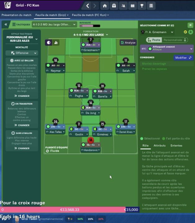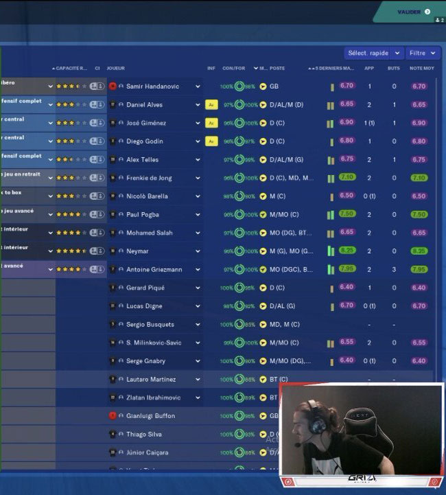 FW : 그리즈만-네이마르-살라, MF : 포그바-바렐라-데 용, DF : 텔레스-고딘-히메네즈-알베스, GK : 한다노비치