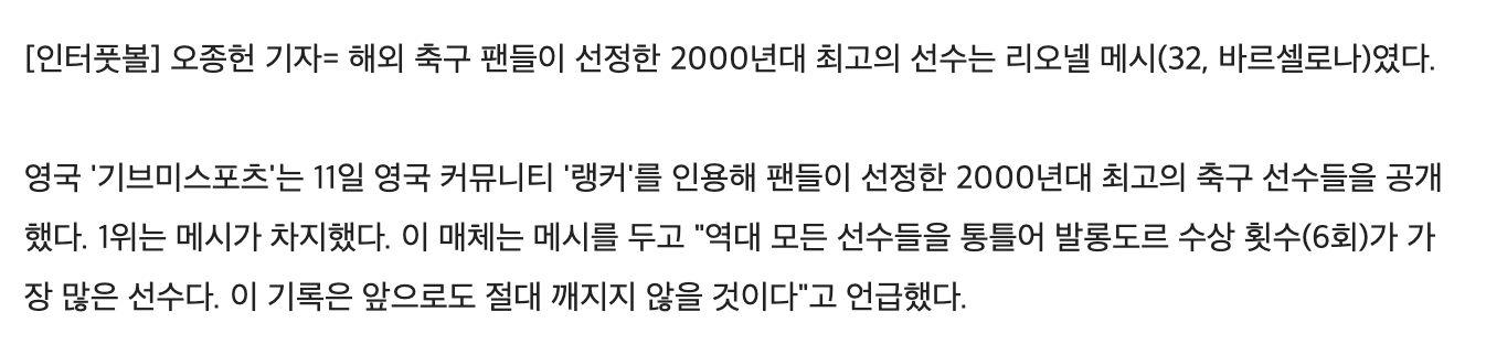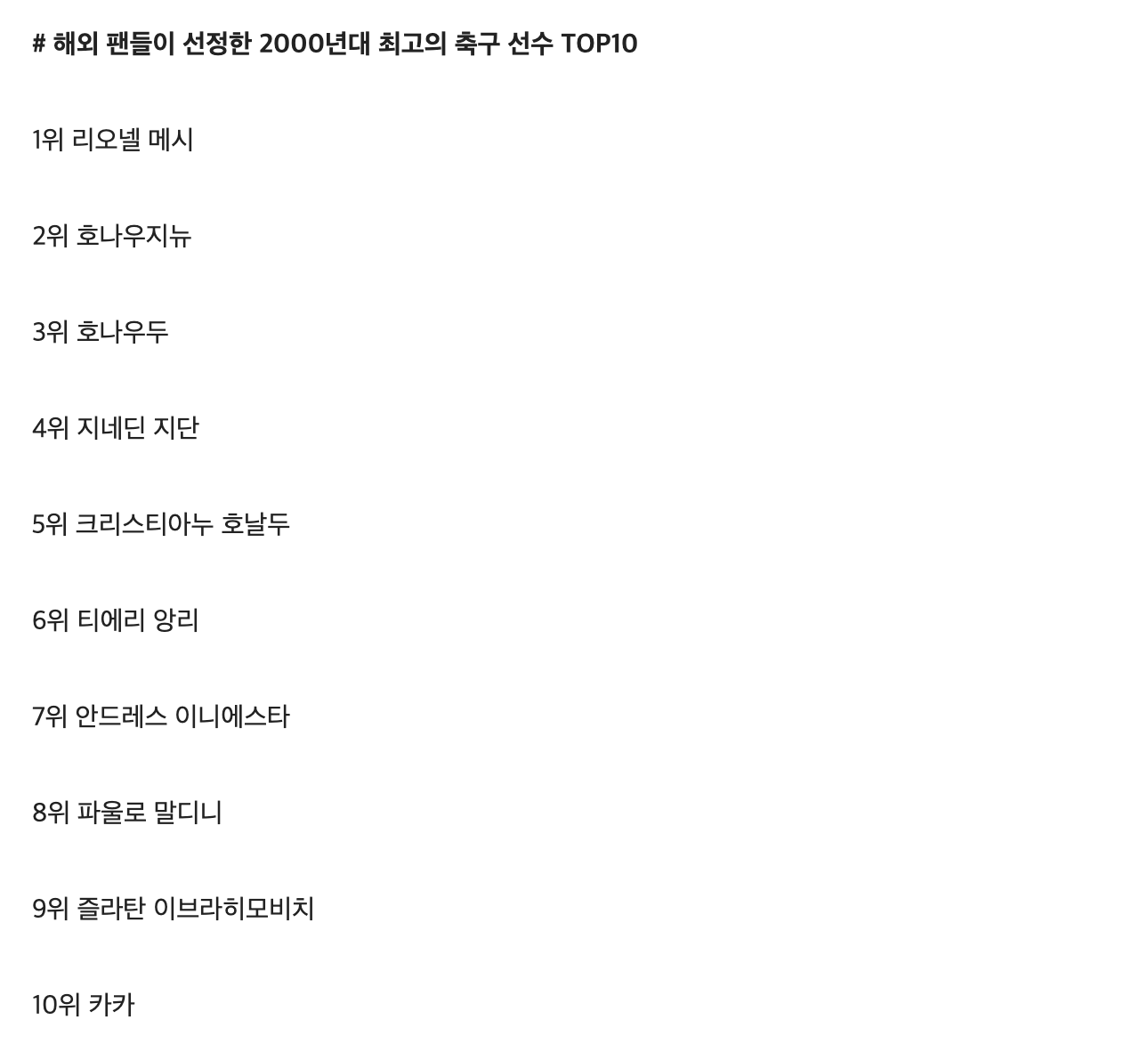 | 해외 팬 투표, 2000년대 최고의 선수 10명 선정 | |