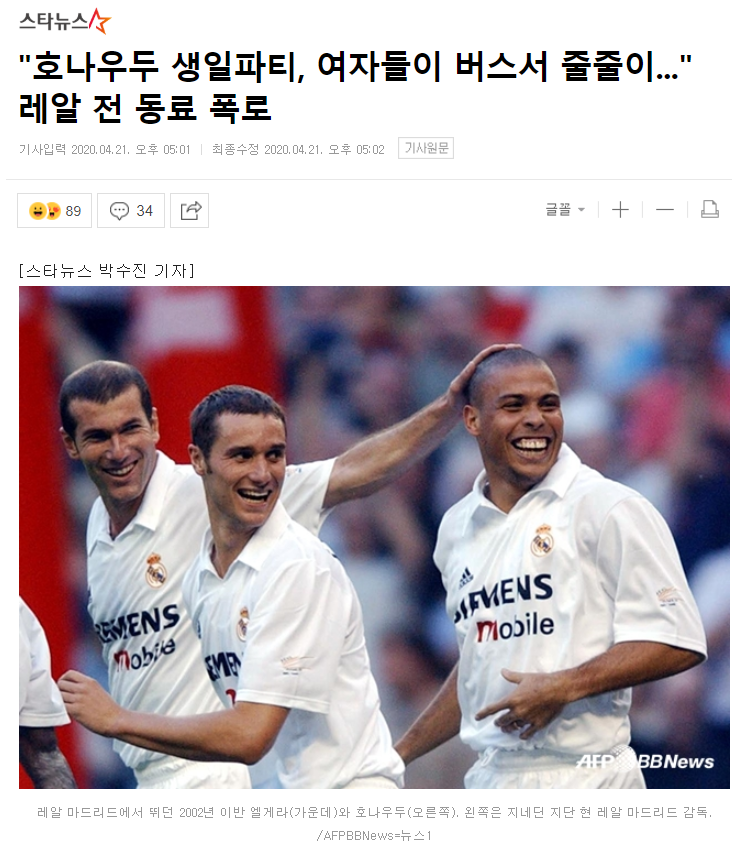 [호나우두 생일파티, 여자들이 버스에서 줄줄이.. 레알 동료의 폭로]